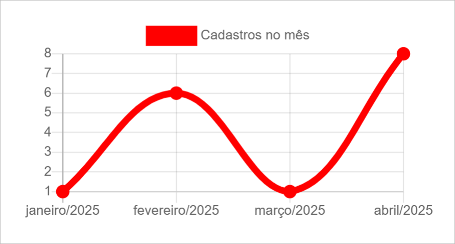 - Número de novos membros cadastrados em cada mês do ano atual.