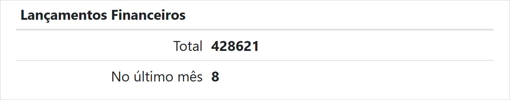 O painel Dashboard da Tesouraria contém as seguintes informações: