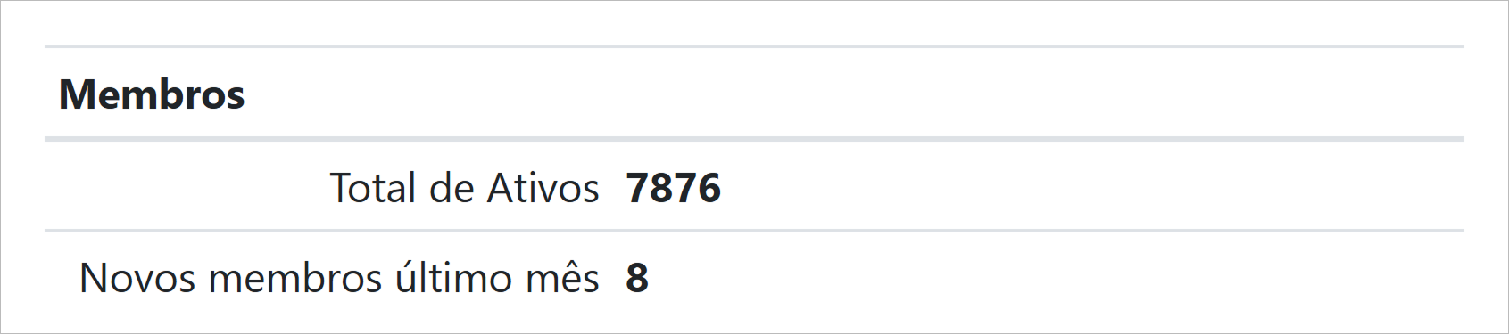 - Total de membros: ativos, aguardando ativação, inativos e desligados;