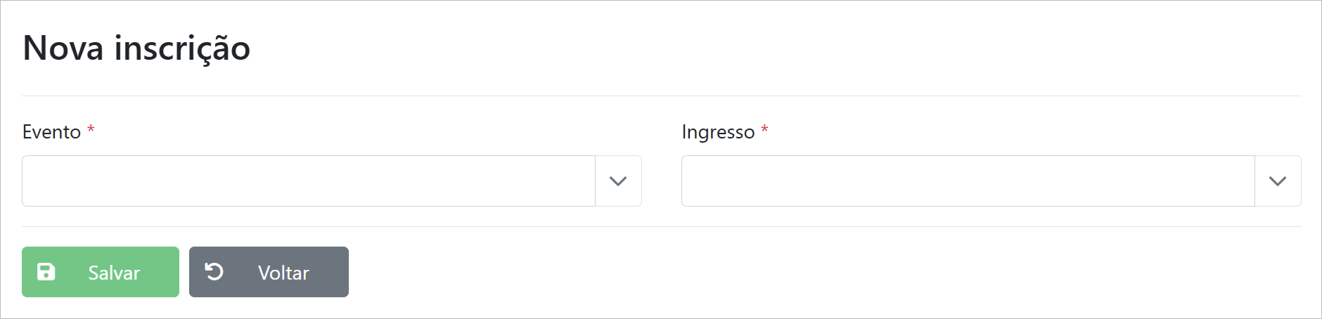 Caminho: /Home/Eventos/Inscrições/Novo