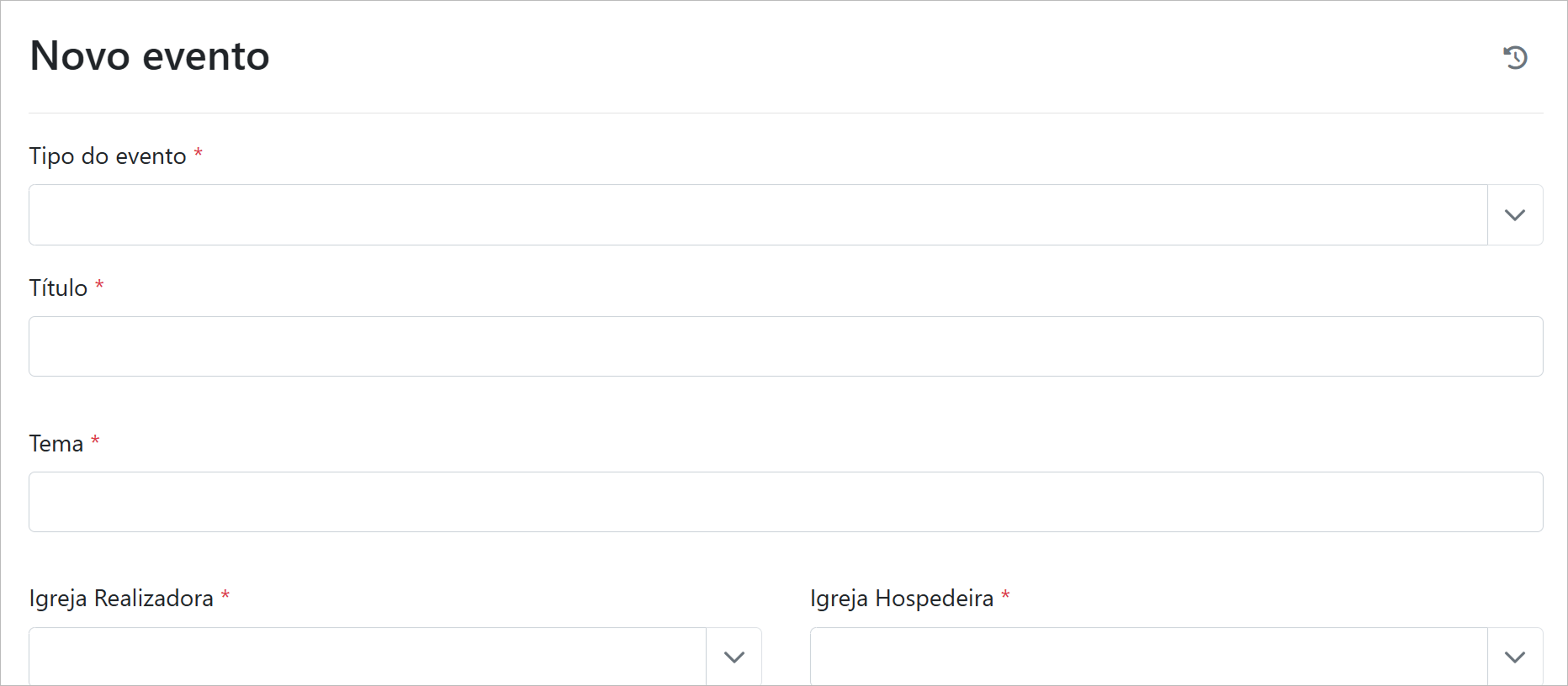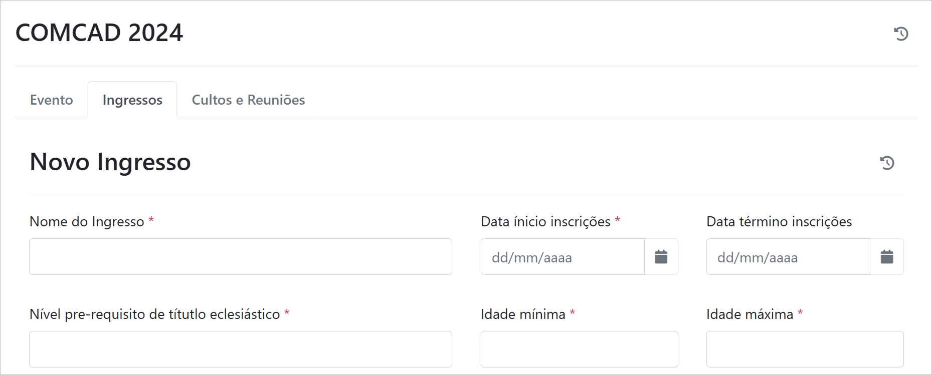 É possível vincular um novo evento a um culto ou reunião.