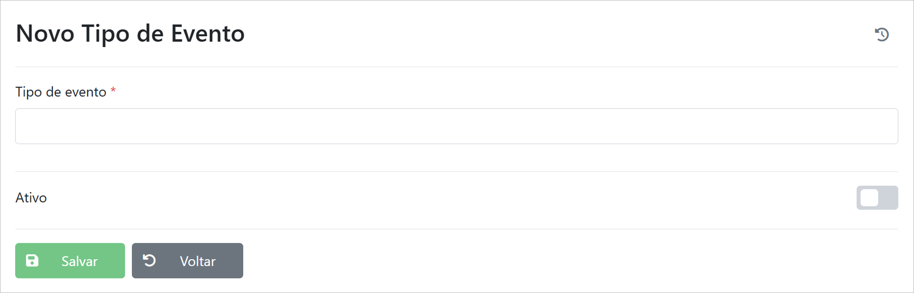 Caminho: /Home/Eventos/Tipos de Evento/Novo