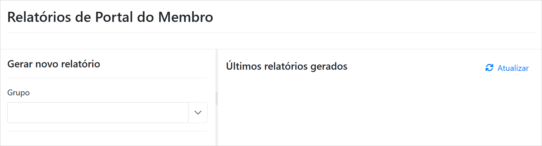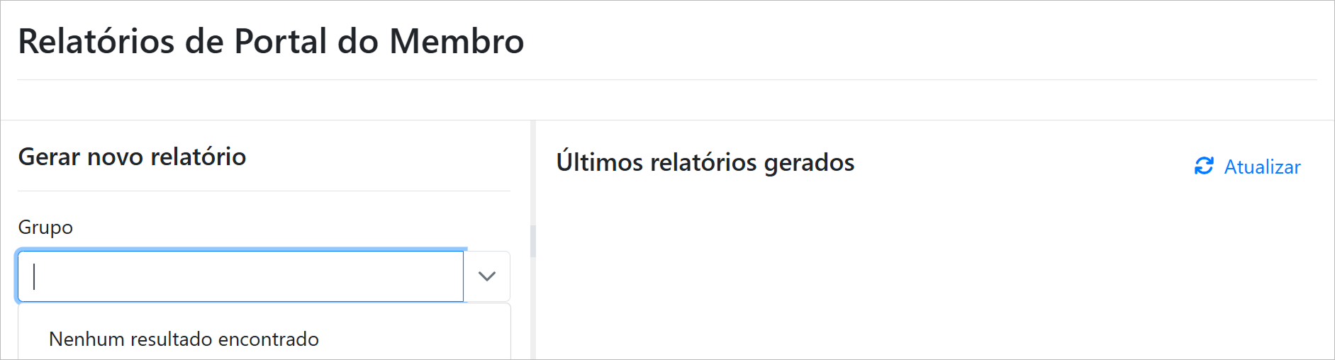 Apresenta os relatórios específicos relacionados ao uso e dados dos membros no portal.