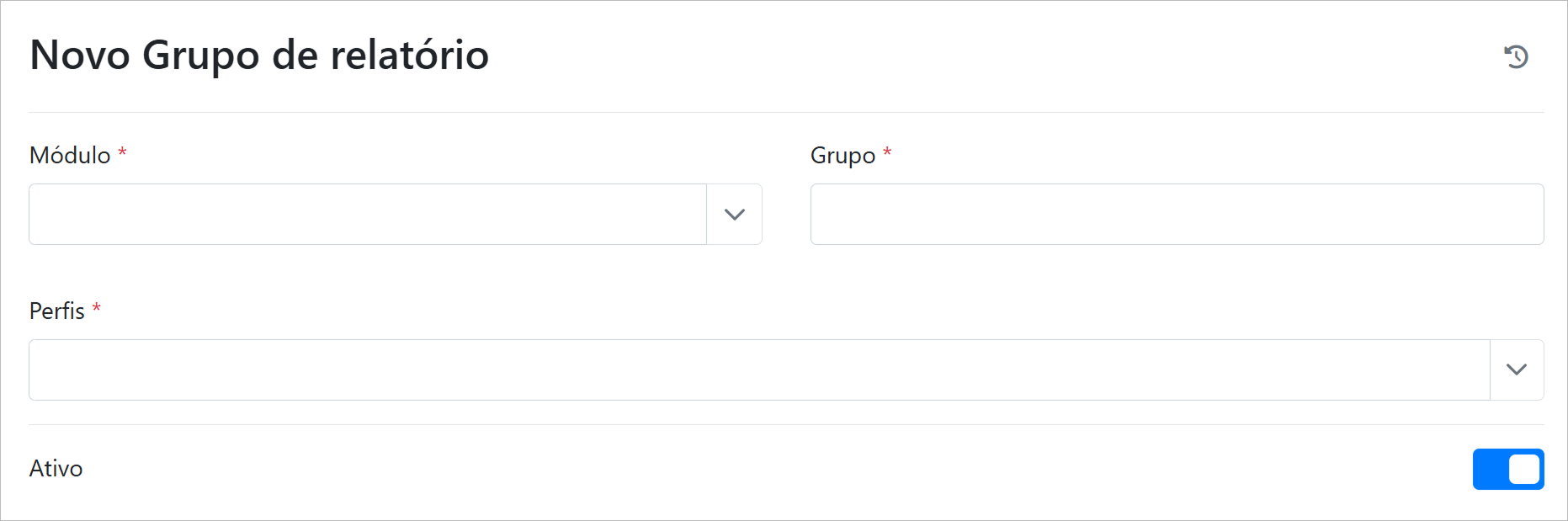 Para adicionar um novo relatório a um grupo, clique no botão "Novo".