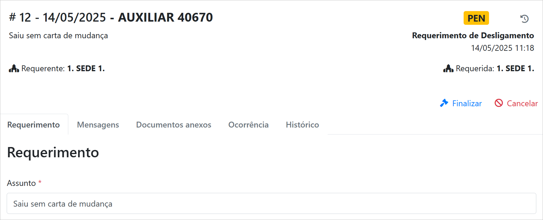 Para editar ou visualizar detalhes de um requerimento já enviado, clique sobre ele.