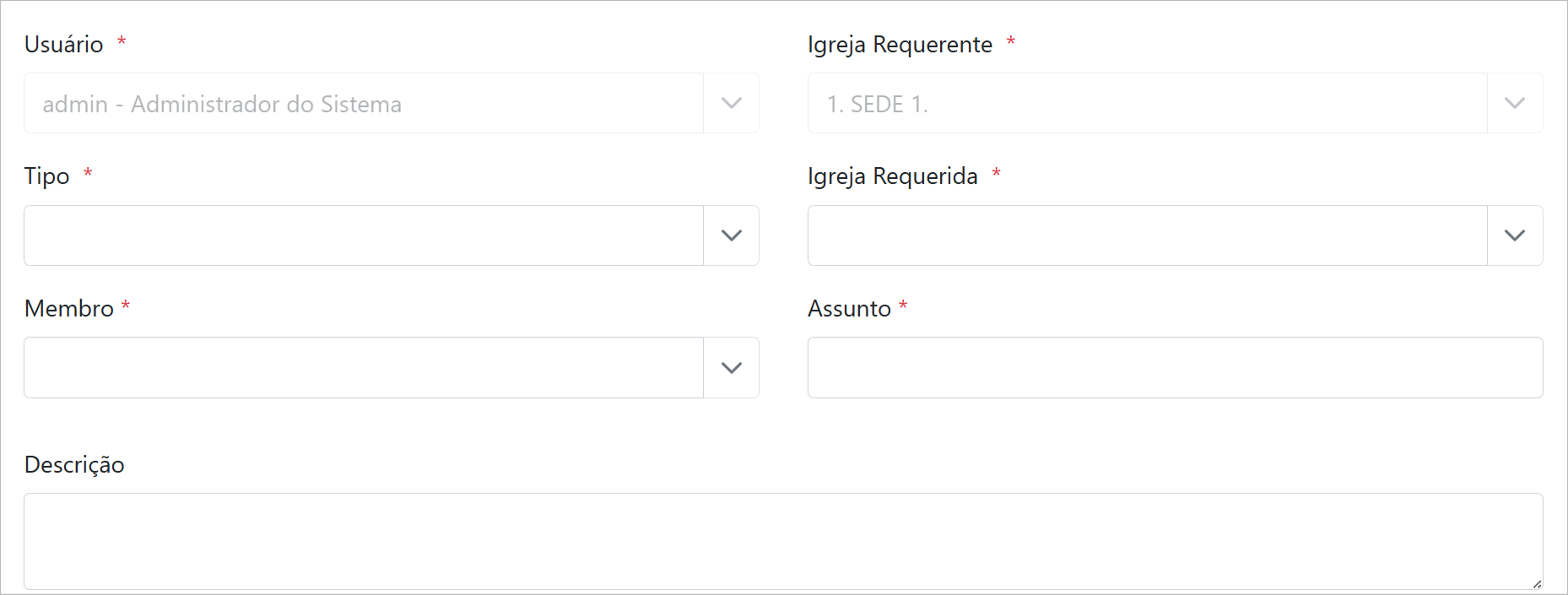 A seção Requerimento permite gerenciar solicitações internas ou entre igrejas. É possível categorizar, acompanhar e organizar os pedidos de forma prática. A ferramenta promove comunicação clara e processos mais ágeis. Ideal para uso administrativo e ministerial.