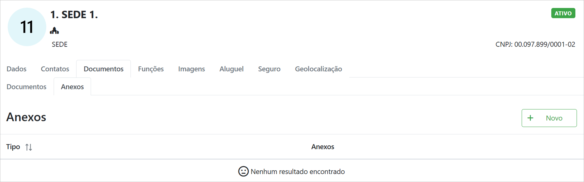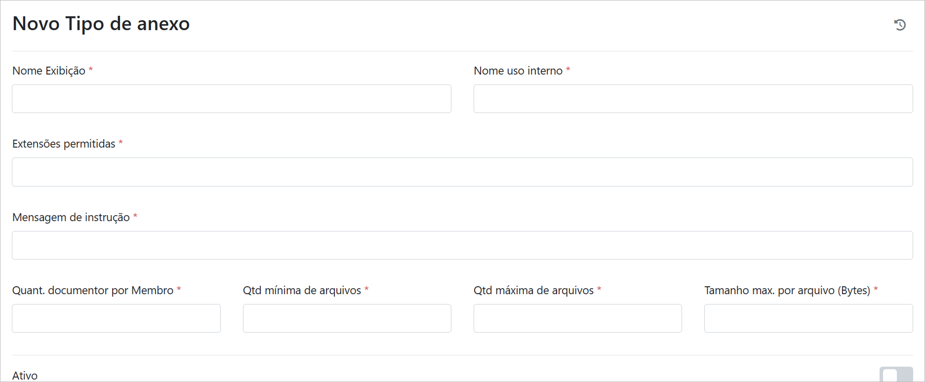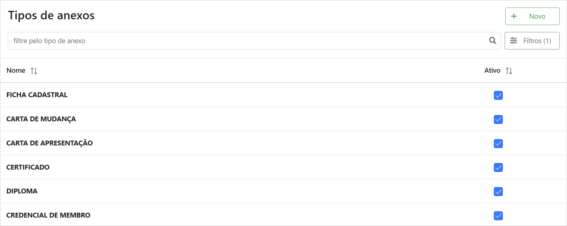 É possível criar um novo tipo de anexo, clicando em "+ Novo".