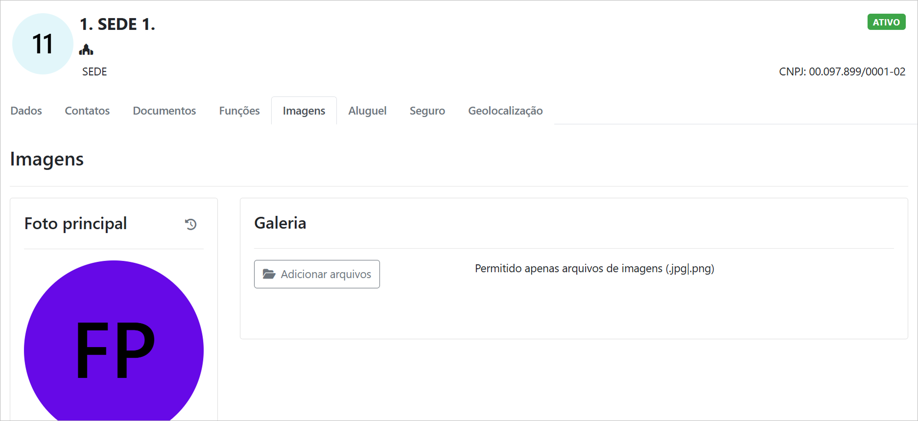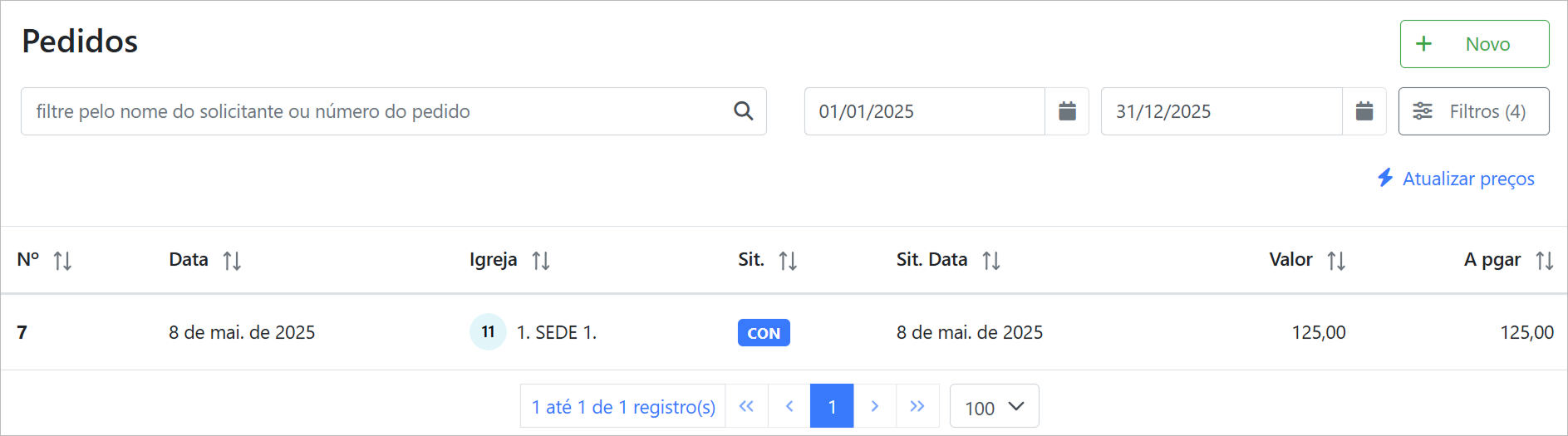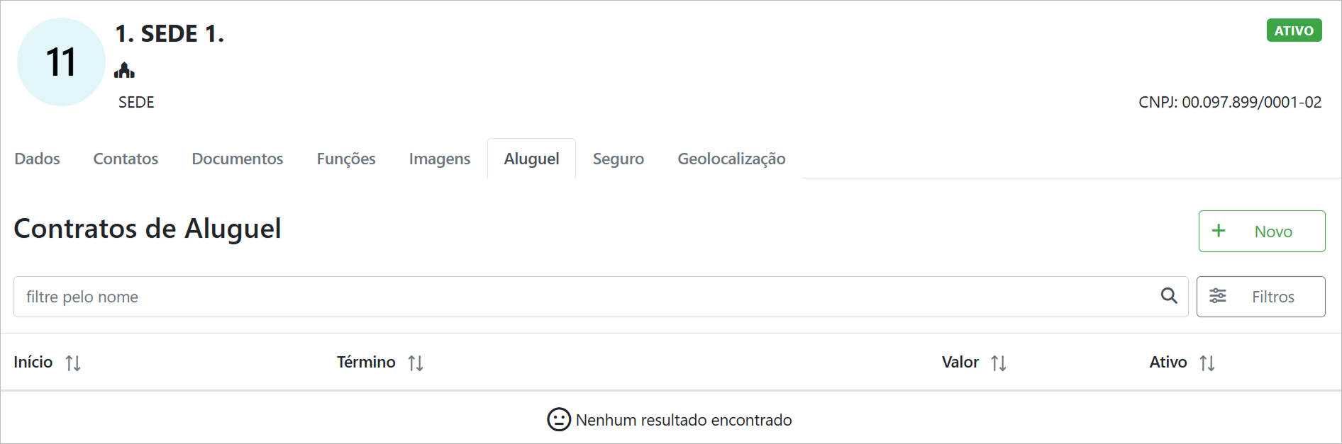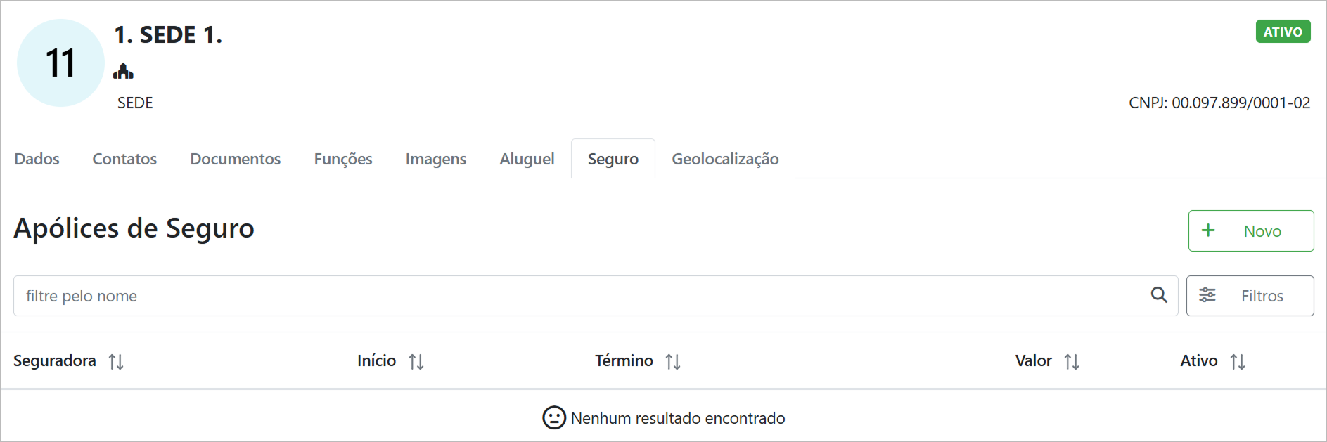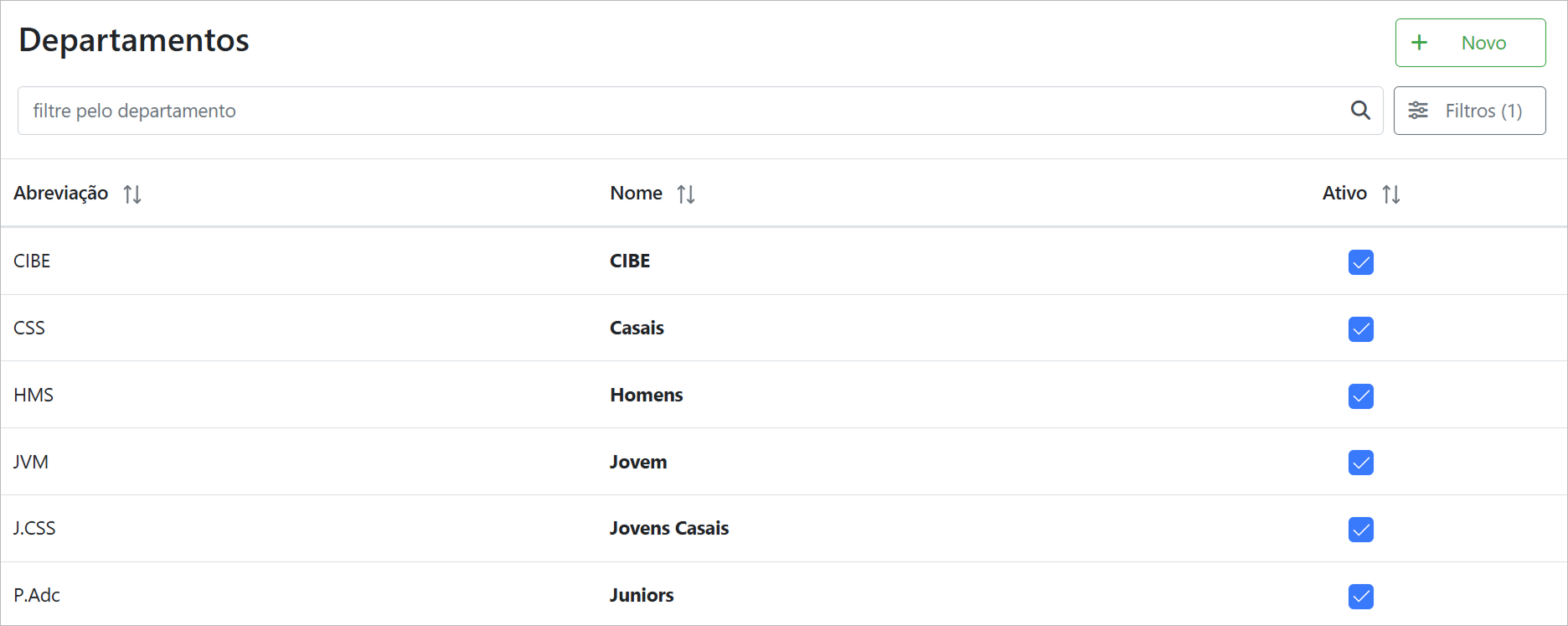 É possível adicionar um novo departamento, clicando em "+ Novo".