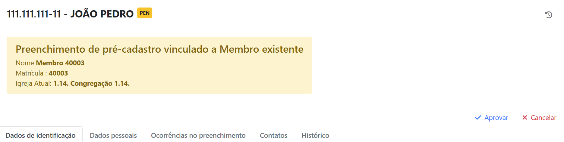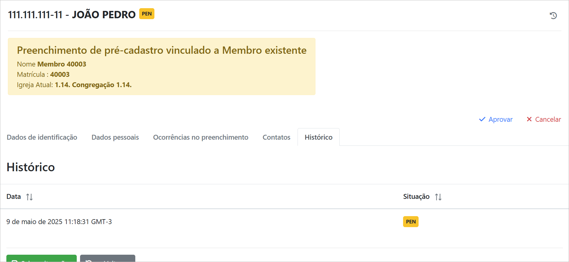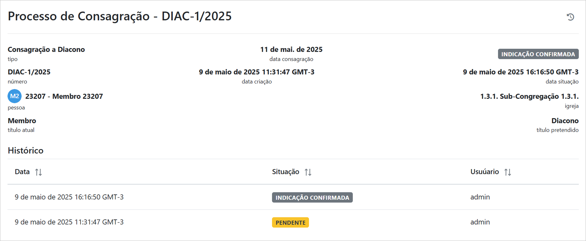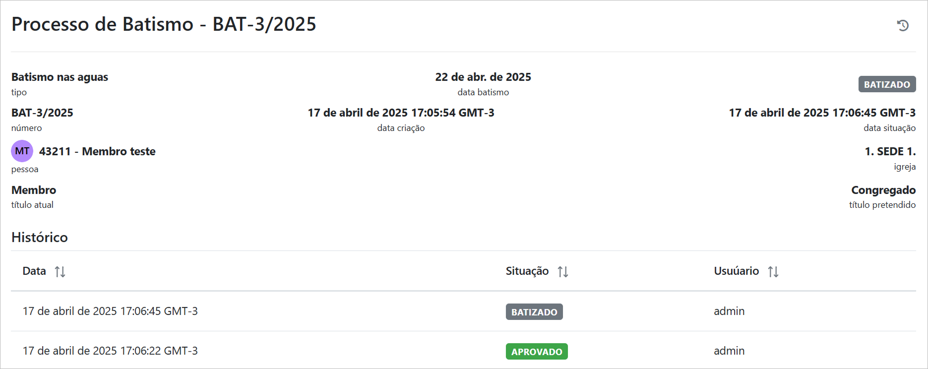Exibe o histórico eclesiástico do membro, registrando eventos relevantes (como datas de batismo, consagrações e etc).