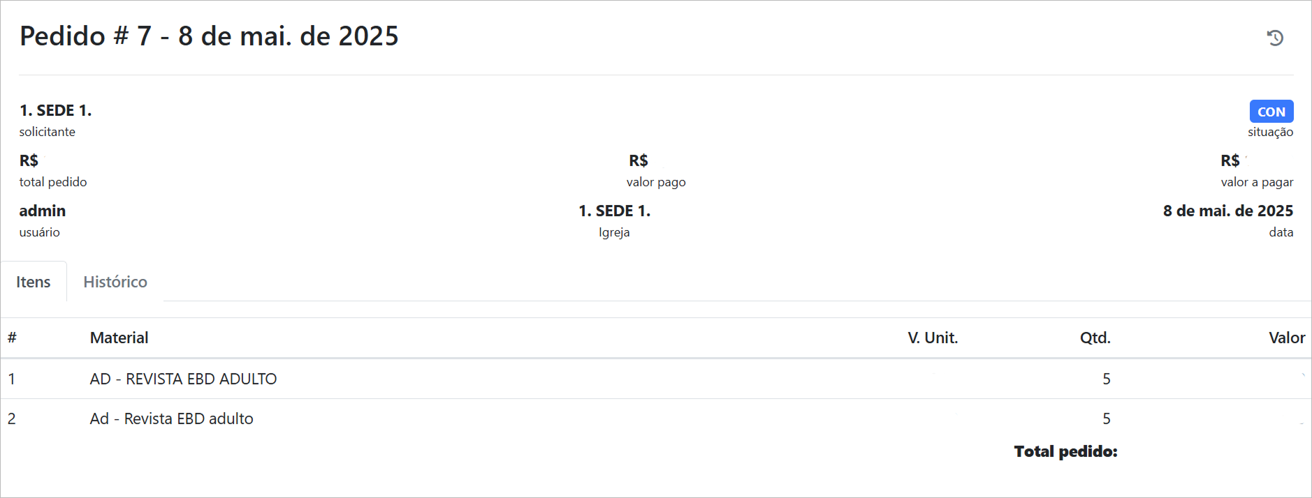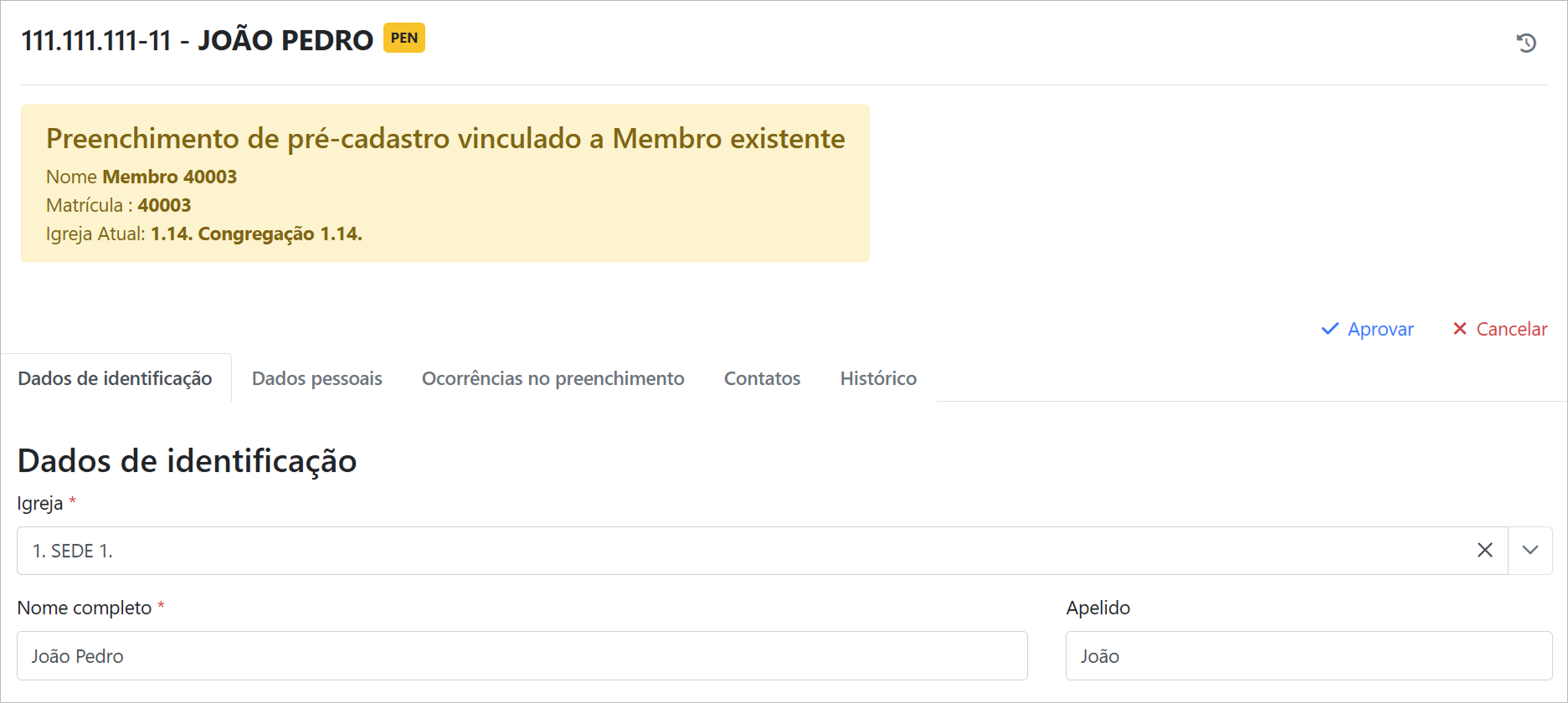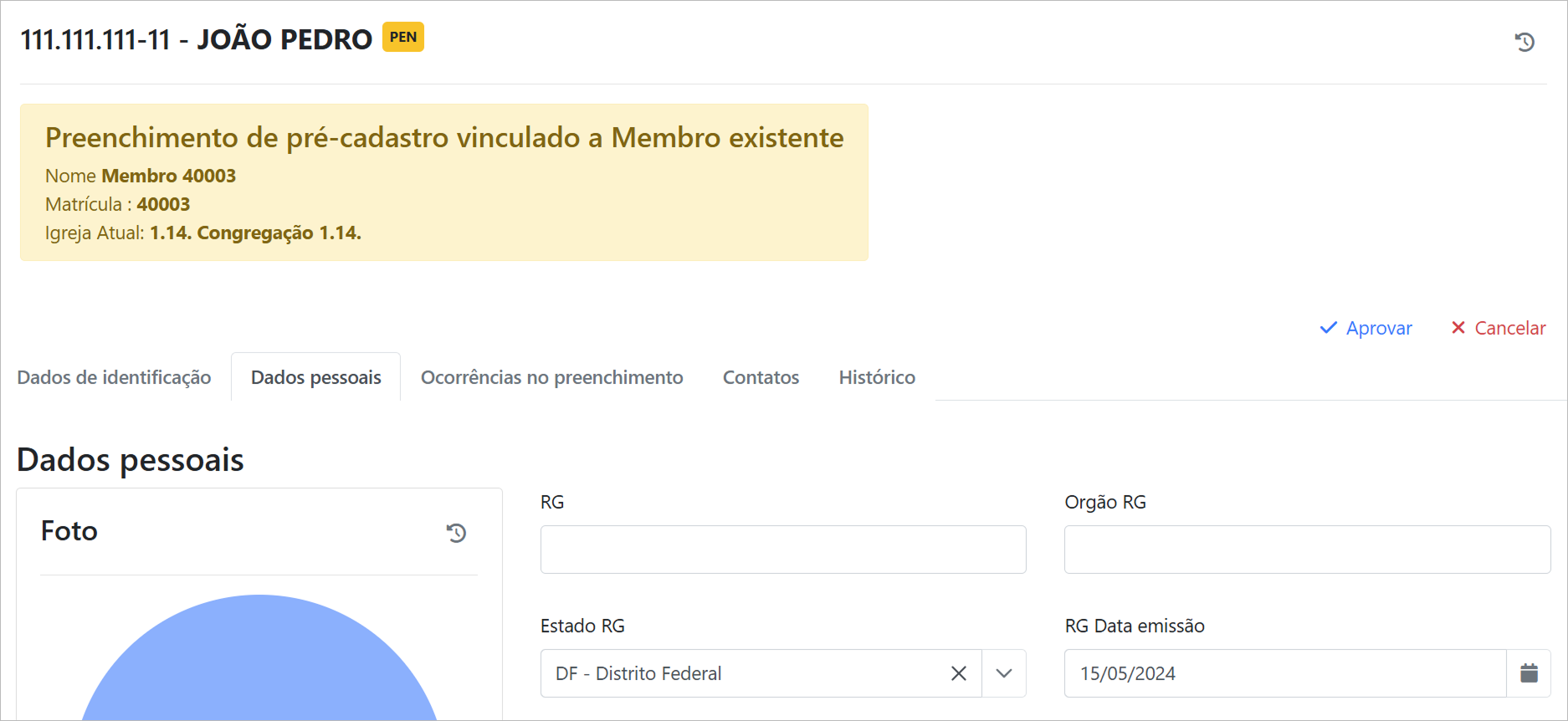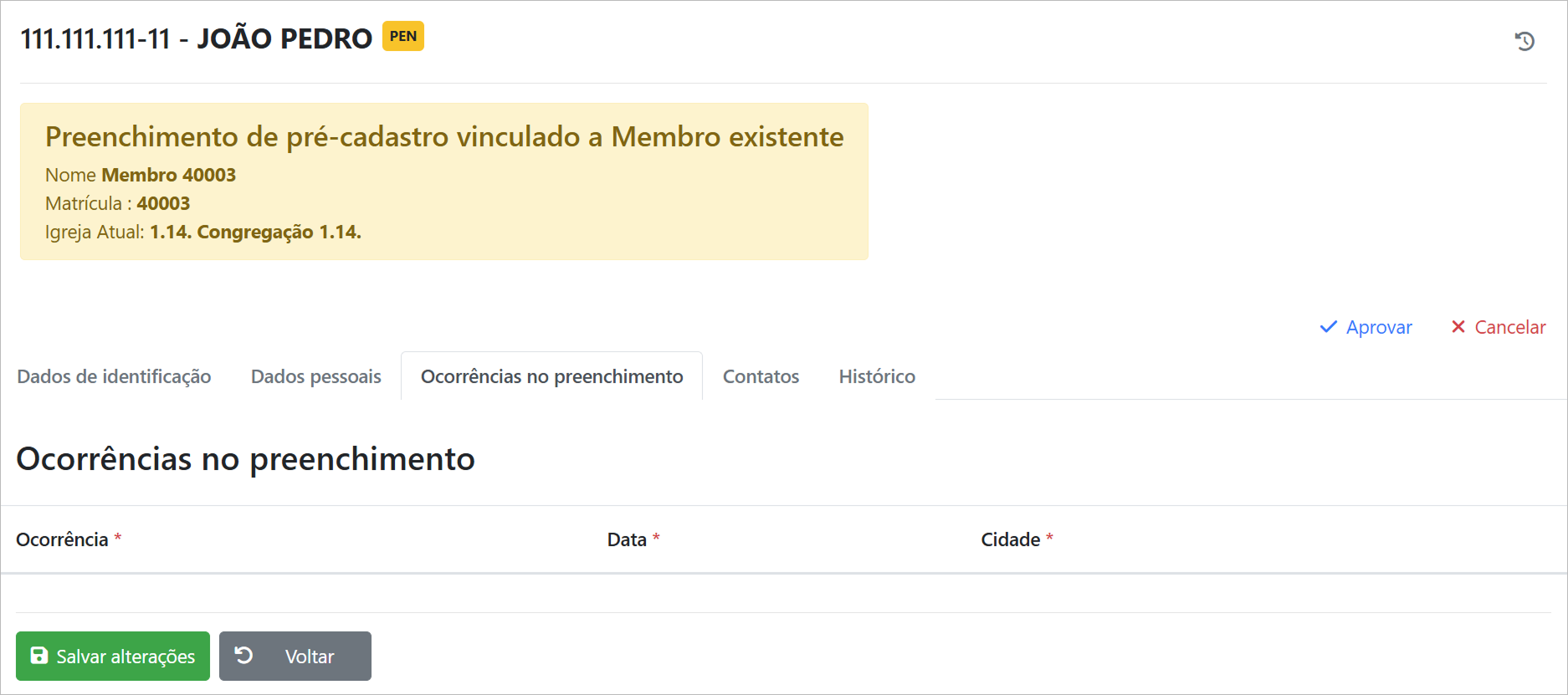 Exibe o histórico eclesiástico do membro, registrando eventos relevantes (como datas de batismo, consagrações e etc).