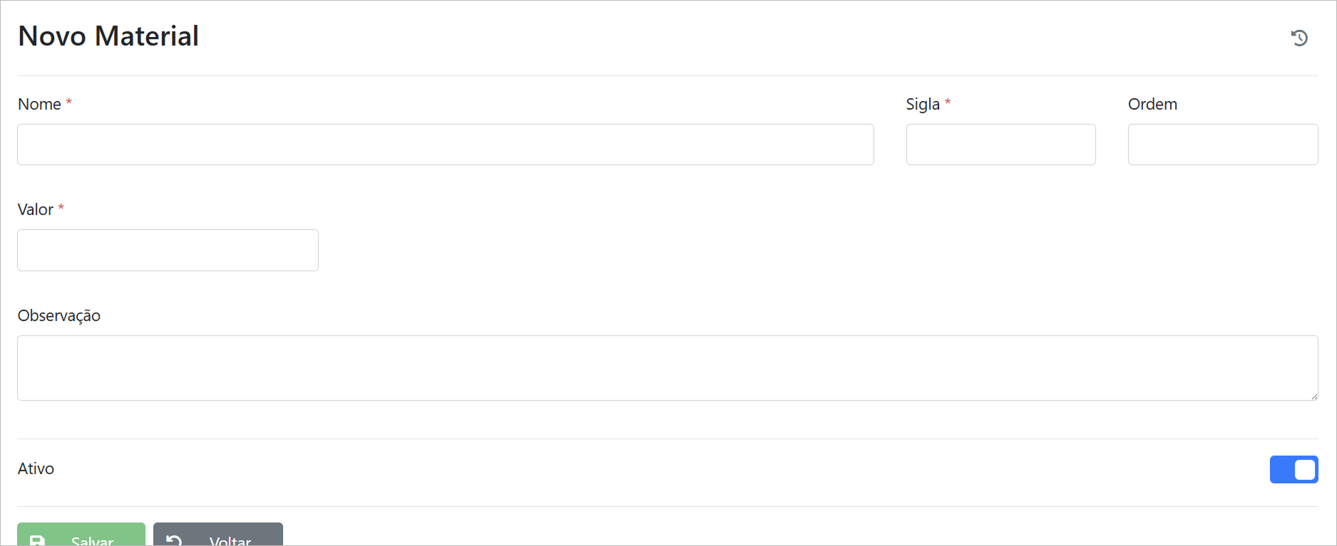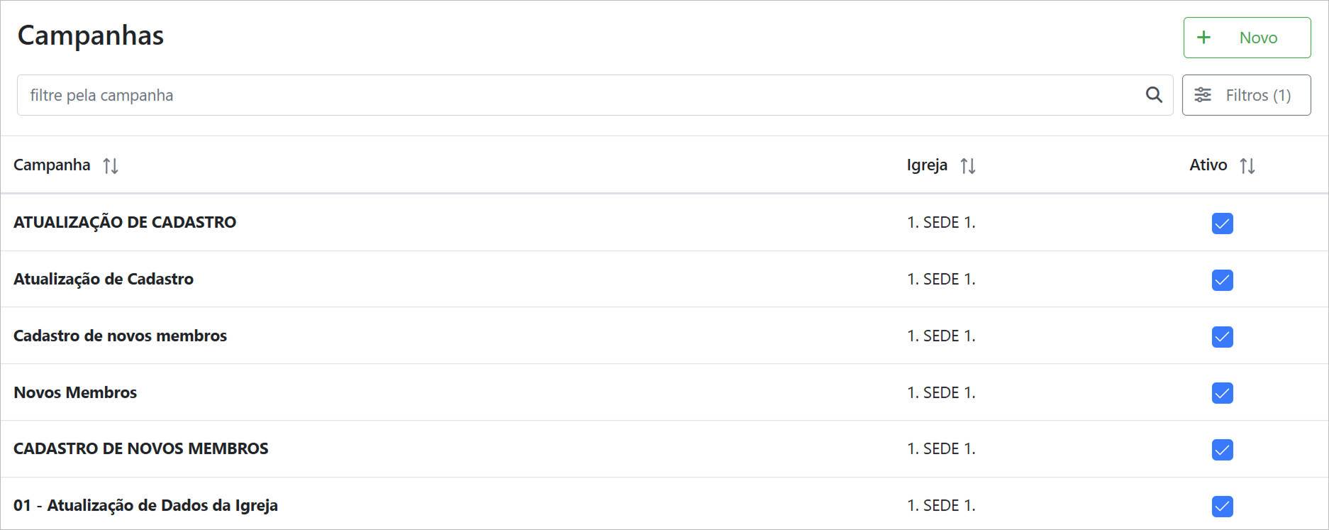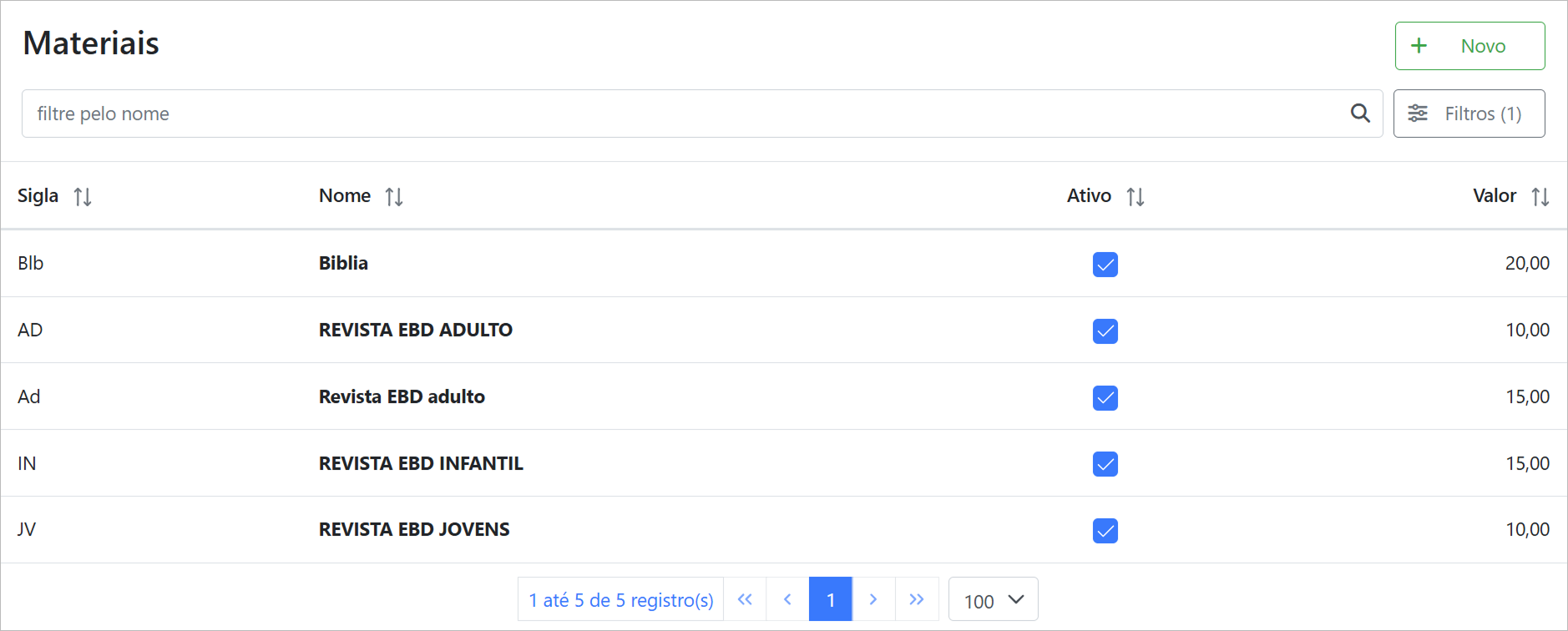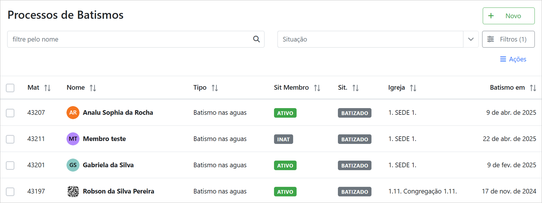 É possível adicionar um novo tipo de batismo, clicando em "+ Novo".