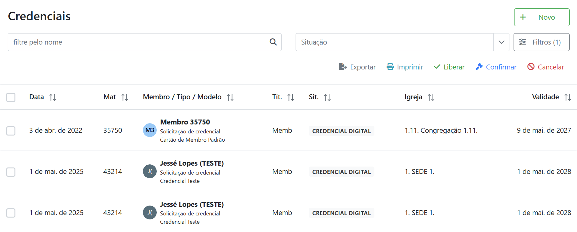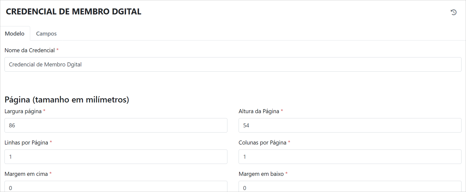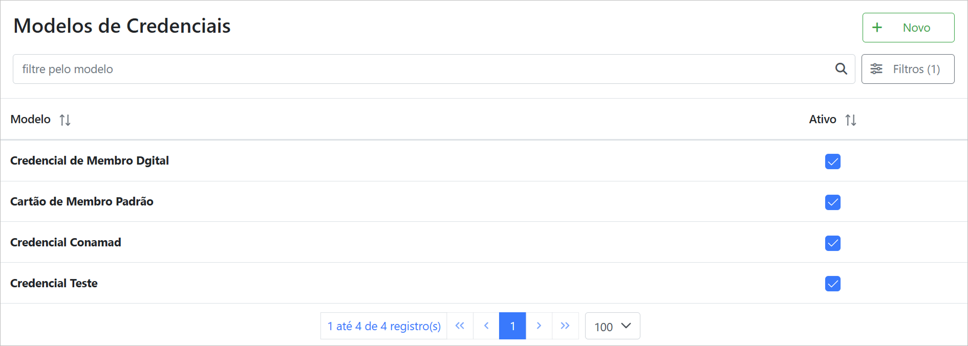 Para poder editar ou visualizar outras informações acerca dos modelos de credenciais, basta clicar em cima do nome da credencial desejada.