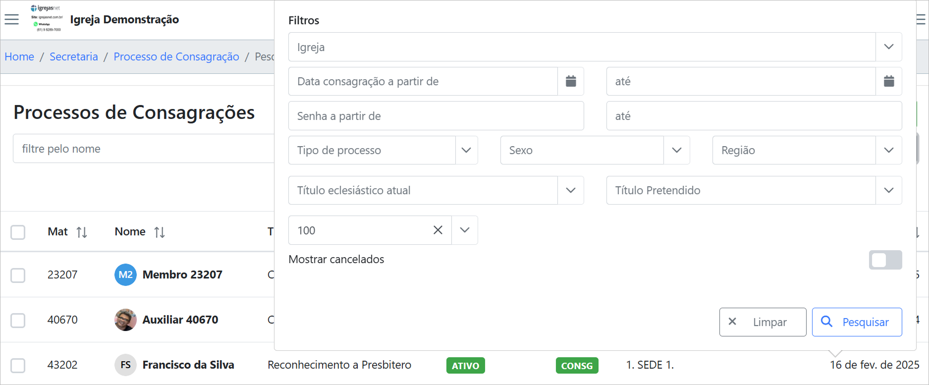 Caminho: /Home/Secretaria/Situações de Consagração/Pesquisar