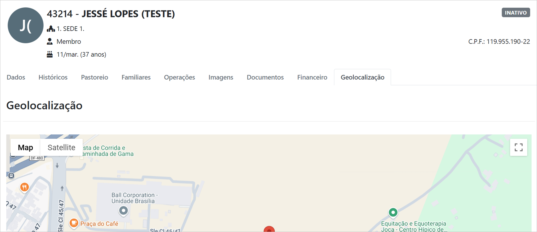 Visualização no mapa da localização do membro, com base no endereço informado no cadastro.