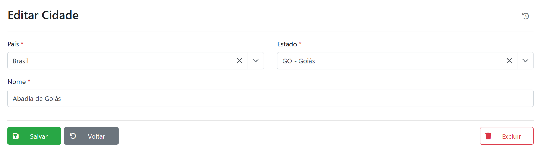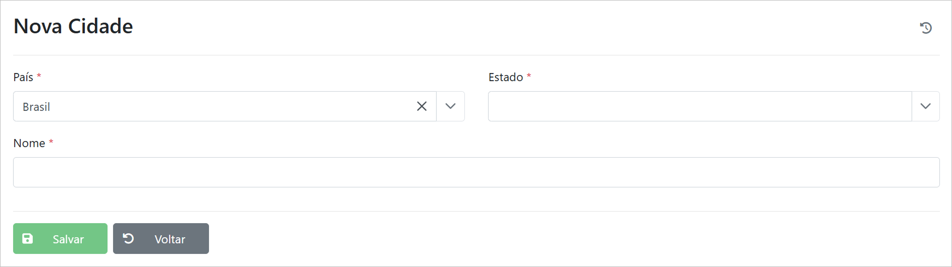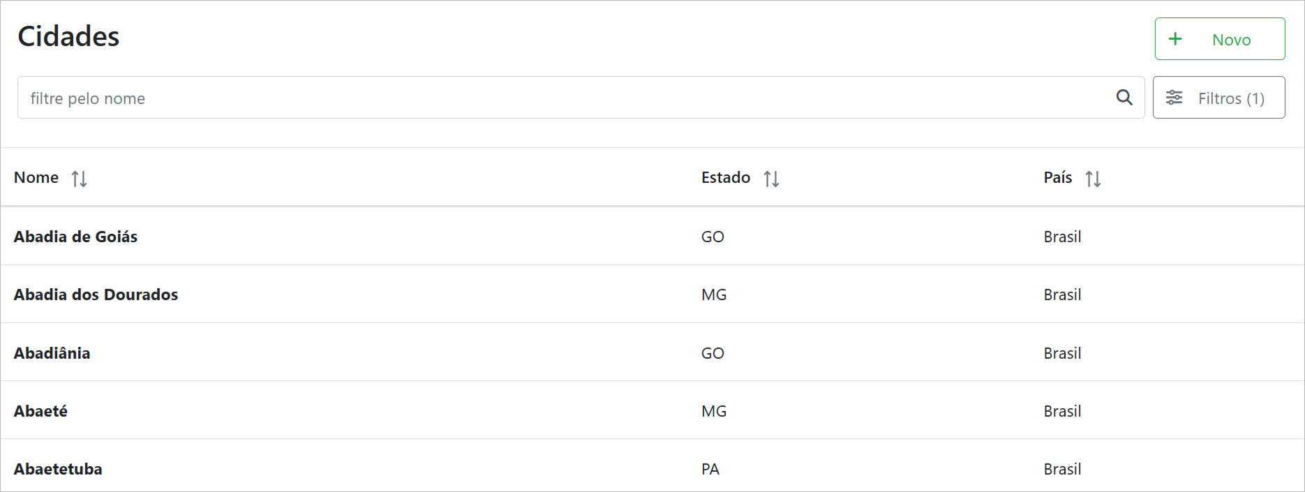 É possível adicionar novas cidades, clicando em "+ Novo".
