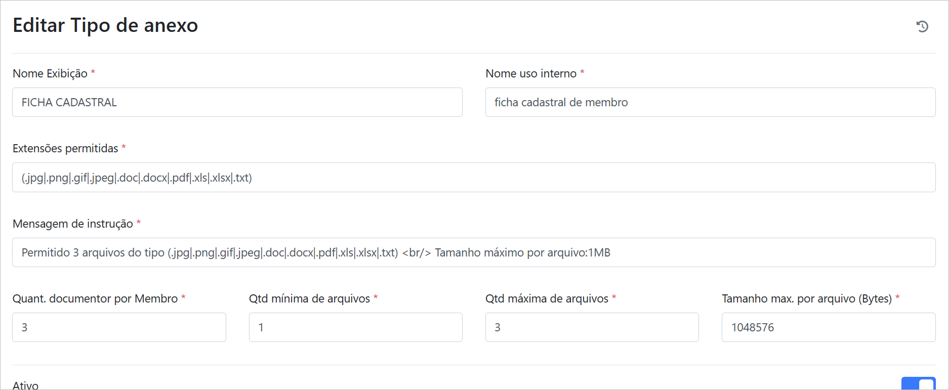 Para poder editar ou visualizar outras informações acerca dos tipos de anexo, basta clicar em cima do tipo de anexo desejado.