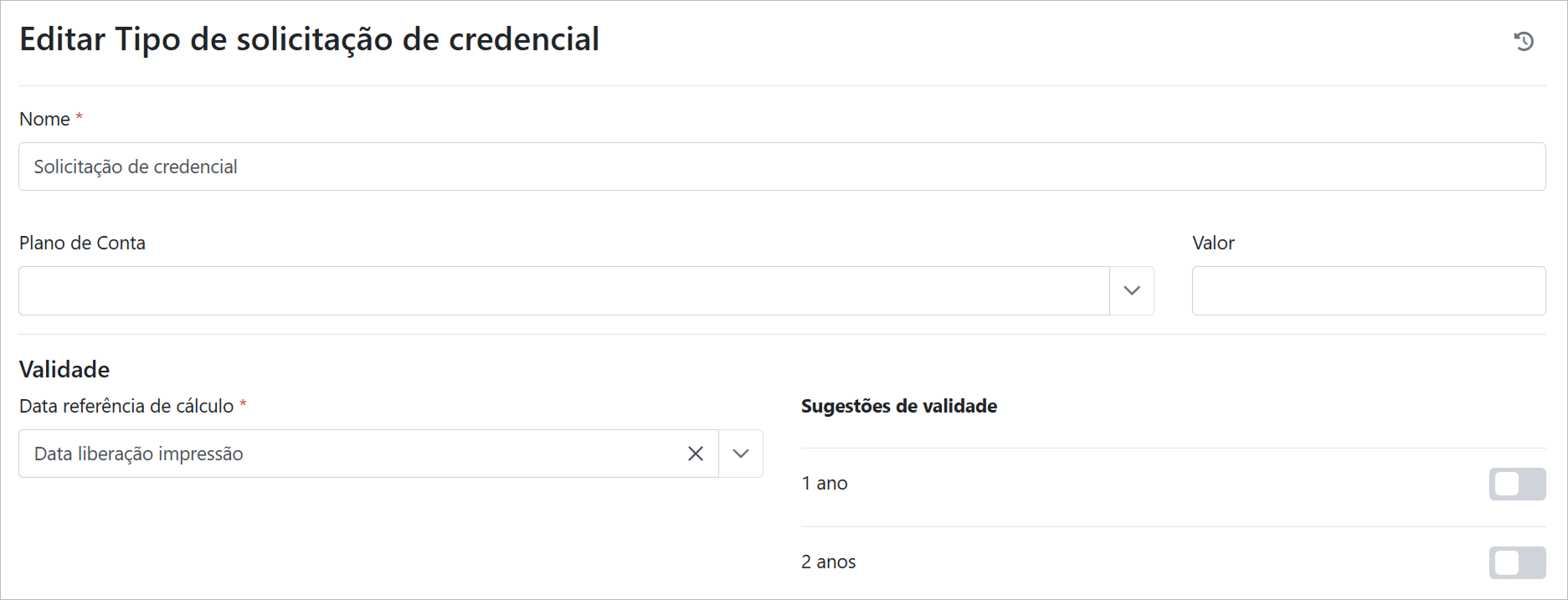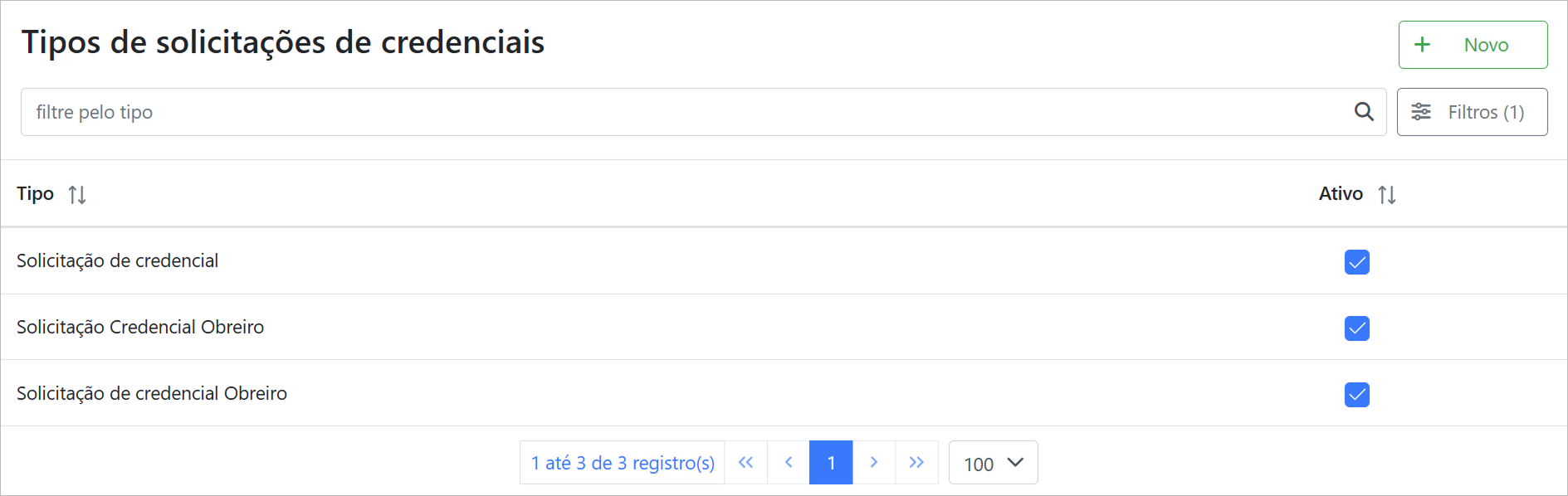 Para poder editar ou visualizar outras informações acerca dos tipos de solicitação de credenciais, basta clicar em cima do tipo de solicitação de credencial desejado.