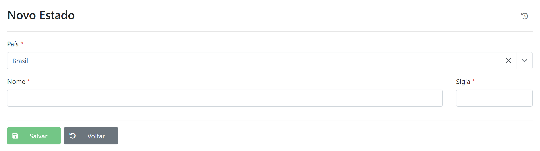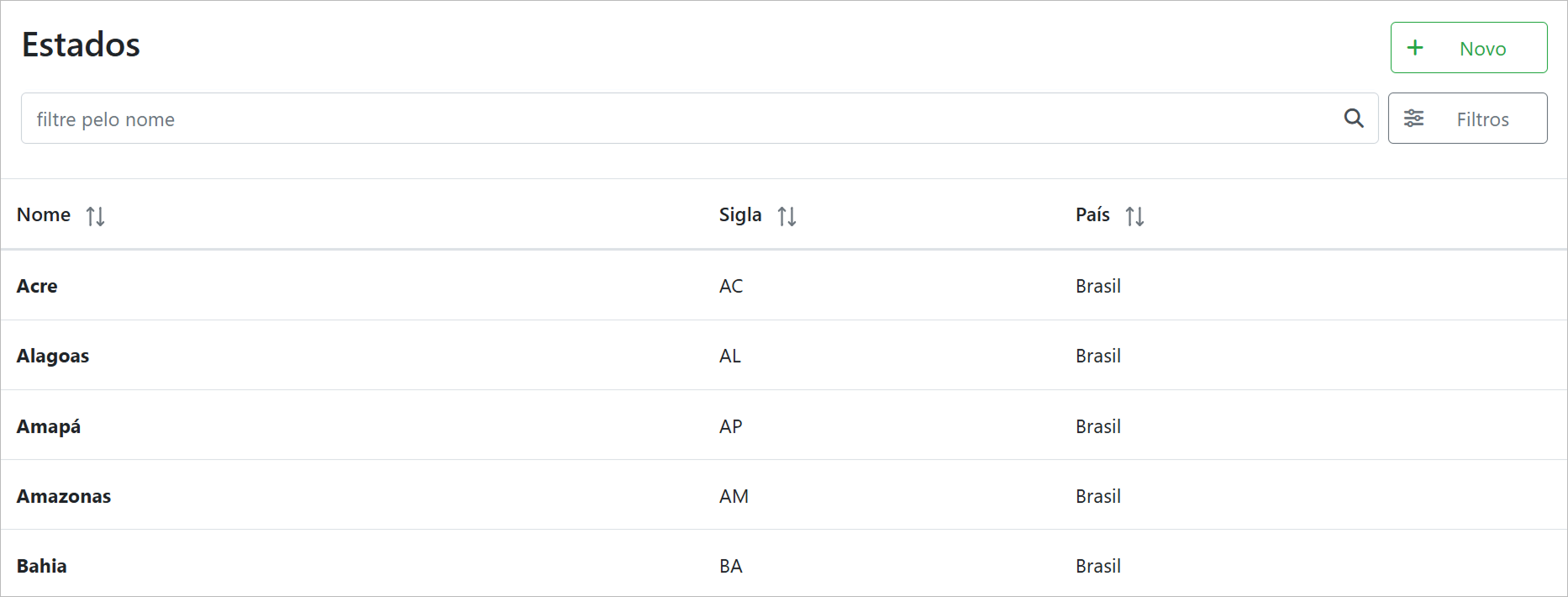 É possível adicionar um novo Estado, clicando em "+ Novo".