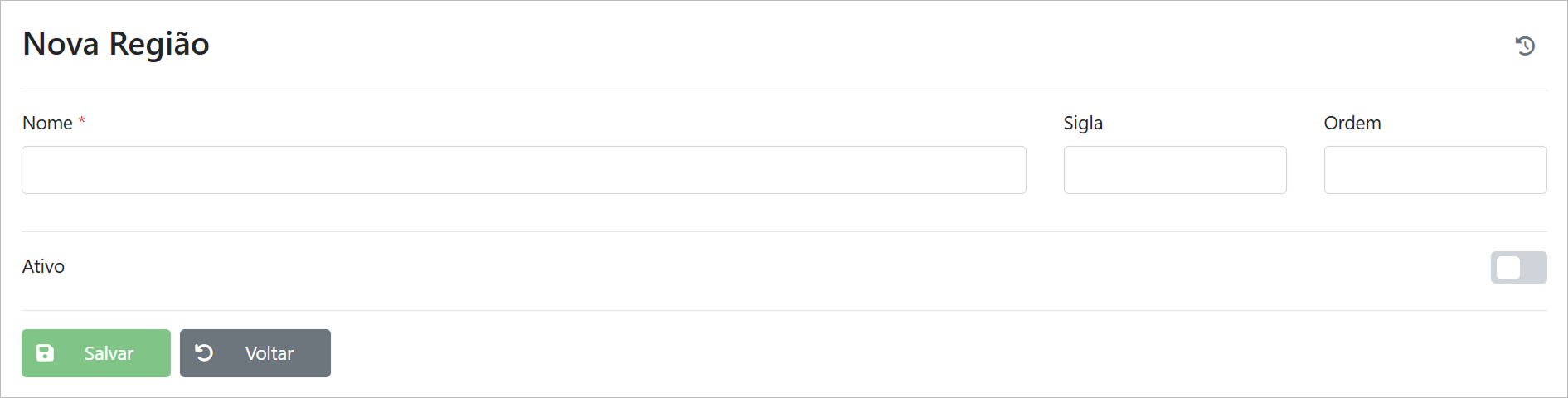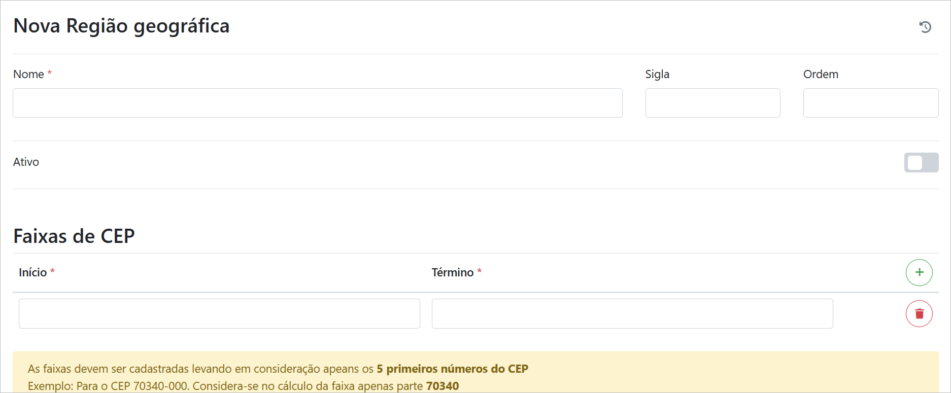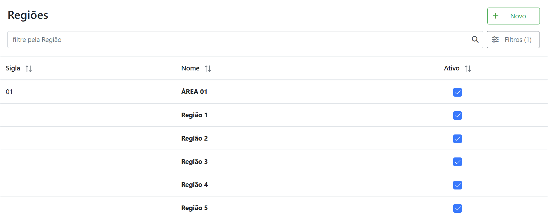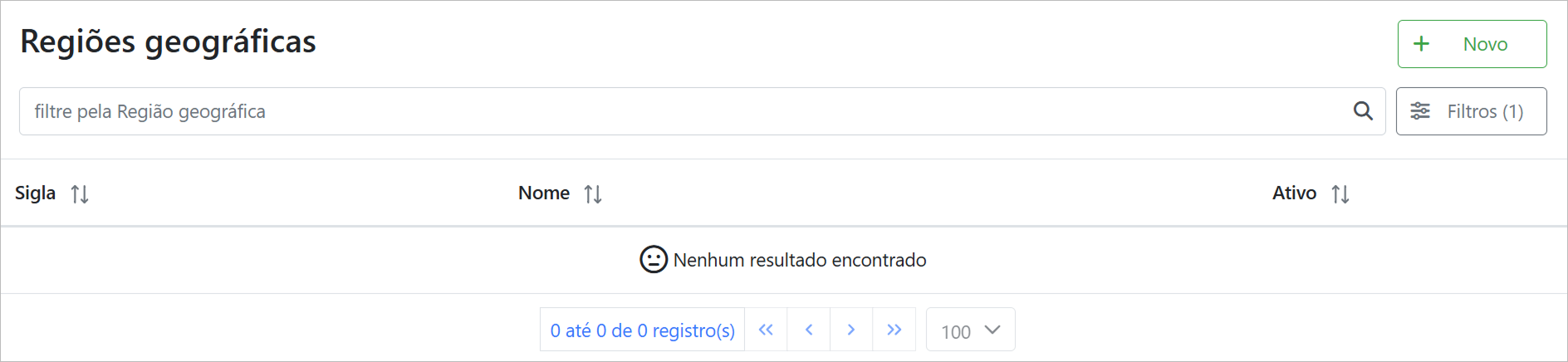 É possível adicionar uma nova região geográfica, clicando em "+ Novo".