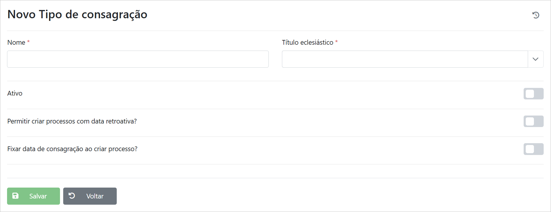 Caminho: /Home/Secretaria/Tipos de Consagração/Novo