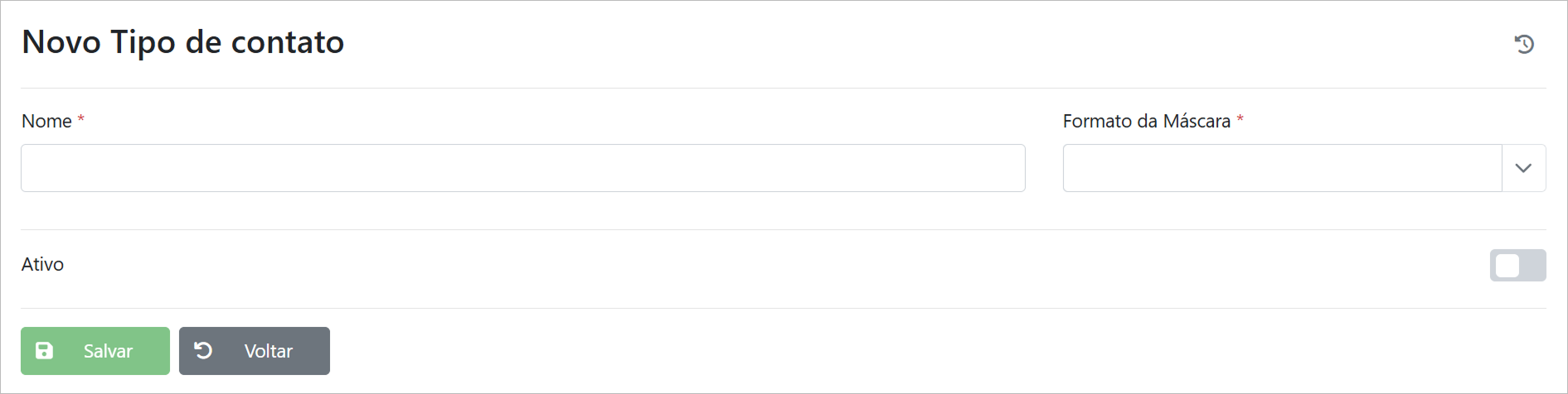Caminho: /Home/Secretaria/Tipos de Contatos/Novo