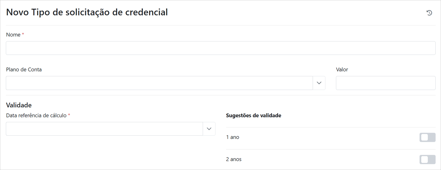 Caminho: /Home/Secretaria/Tipos de Solicitações de Credenciais/Novo