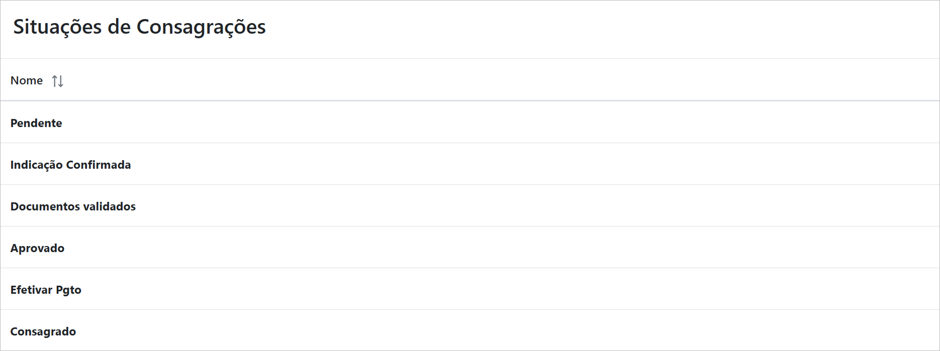 Para poder editar ou visualizar outras informações acerca das Situações de Consagração, basta clicar em cima da Situação de Consagração desejada.
